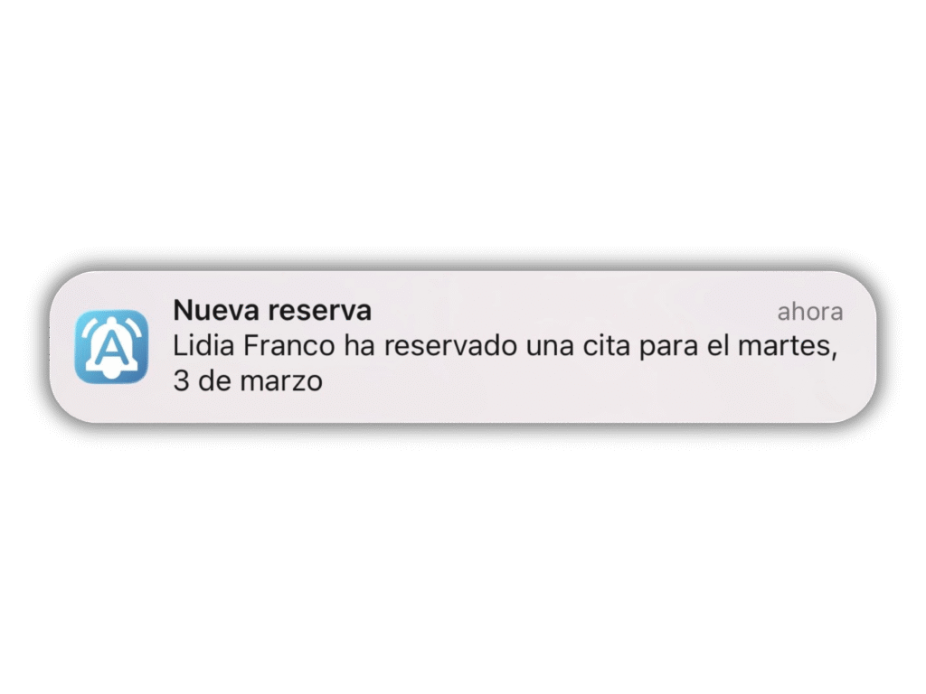 Cuando tus clientes te piden cita, recibirás una notificación para no perderte nada de lo que ocurre en tu negocio.